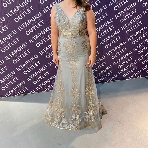 Koko 44 Vilan mekko kerran käytetty. Olkapäältä Helmaan noin 146cm