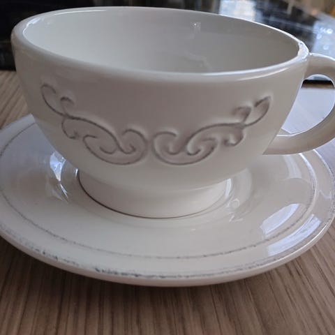 Kukallinen,posliini,kahvikuppi setti 5 kpl.Johon kuuluu, kahvikuppi,alulautane ja pullalautanen.