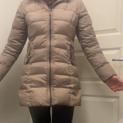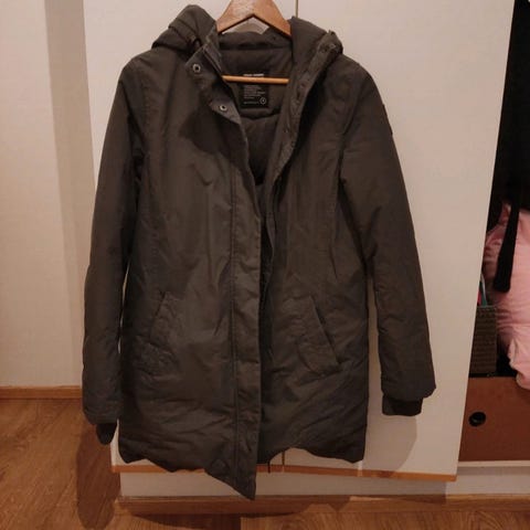 Tummansininen hupullinen untuvatakki,vetoketju +neppari kiinnitys sivusaumoissa vetoketjulliset taskut.Takana ylhäällä pieni kuluma tullu laukusta, huppu peittää sen. kai-kai 52 cm niska helma 93 cm hiha kainalosta 46 cm nouto tai postitus.