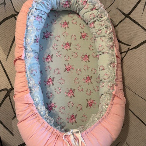 Myydään ihana vaaleansini valkoinen vauvanpesä pitsikoristeilla. Rusetin saa pois ja pesän avattua. Kunto hyvä, käytetty aina pientä lakanaa suojana. Jotain kevyttä jälkeä on, mutta varmasti pesussa lähtee pois. Ei pesty kertaakaan.
