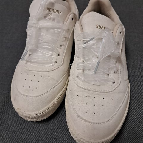 Käyttämättömät mustat Superdry Retro Track Sport Runner vegaaniset kengät, koko 40. Keinomokkanahkainen pinta, kumipohjat. Viimeistelemättömän näköinen kankainen läppä. (Ovh. 89,99 EUR)