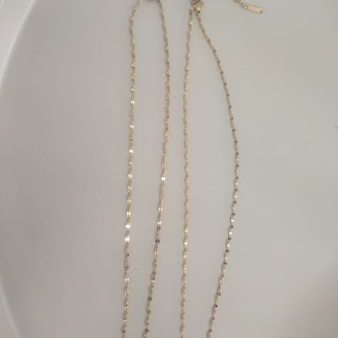 Metallinen 6-kertainen kaulaketju. Väri puoliksi sinisenkiiltävä ja puoliksi hopeanvärinen. Pituus 54 cm. Voi myös käyttää 3-kertaisena tuplasti pidempänä. Nouto Espoosta Ison Omenan ja Matinkylän metroaseman läheltä tai ostaja maksaa postimaksun.