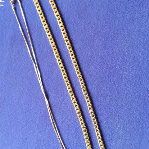 Kullattu paksu ranneketju. Pituus noin 20 cm, leveys noin 0,9 cm.