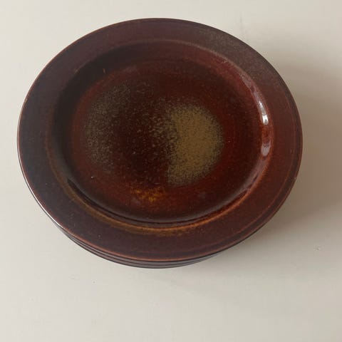 Arabia Mahonki matala lautanen 24 cm, kestää konepesun ja uunin, joten käyttömahdollisuudet rajattomat. Pinnan lasituksessa enemmän käytön jälkeä, väri kauniin punaruskea, pari valkoista läikkää lasituksen alla. Kunto kohtalainen. Merkkilautanen esim. aluslautaseksi.
