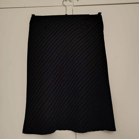 Musta joustava minihame kultaisilla tehosteilla 2000-luvun alusta.