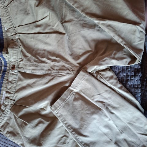 Dockers Gargo pants. Puuvillaa. Käytetyt perussiistit, klassiset reisitasku housut, khaki väriset, vetoketjulla, pesty. Vyötärö 85cm, haara-vyötärö 28cm, haara-lahkeensuu 80cm, lahje 23cm. Ei sovituksia, ei toridiiliä, en tingi. Nouto tarkka aika etukäteen sovitusti ma-pe kl.10-16 Hki 88 tai postitse pakettina.
