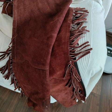 Ihanat, hyväkuntoiset täyspitkät ja nahkaiset chapsit lännenratsastukseen tai vaikka naamiaisiin ;)