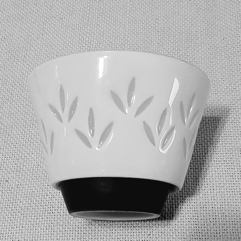 Myydään kuvan riisiposliinikippo. Arabian leima pohjassa, lehtikuviot koristeena. Korkeus 4cm, halkaisija 7cm. Kunto moitteeton.