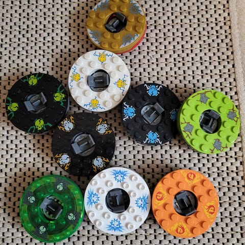 9 spinneriä ja 4 kokonaista ukkoa ja muita pieniä osia.