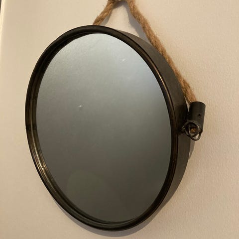 Myydään Finnmirror made in Finland pyöreä peili. Reuna ruskeaa muovia, halkaisija 50 cm.