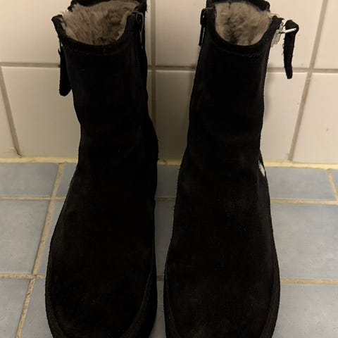Ihanat lämpimät saappaat, koko 36. Vetoketjut edessä. Nahkaa, mohairia sisältä. Kertaalleen sovitettu kauppareissun ajan, itselle pienet raskauden myötä. Myydään alkuperäisessä laatikossaan.