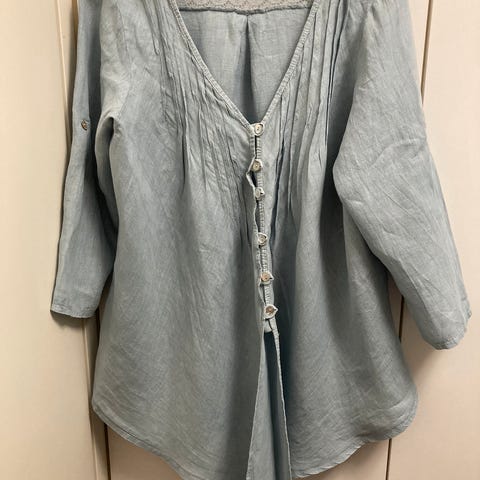 Harmaameleerattu. Tunika / mekko. Indiska. 100% pellavaa. Olka-helma 92cm, kai-kai 58cm, kainalo-hihansuu 42cm.