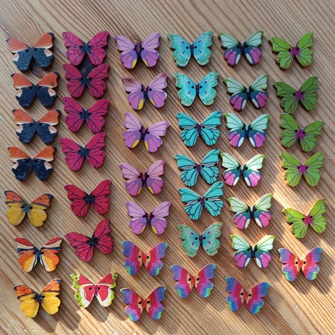 Paljon erivärisiä askartelupunoksia. Pituus 30 cm.