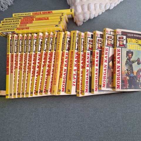 Legendaarinen lännenpokkari, josta iloa pitkään. 66 kpl. Koko satsi 165 euroa. Kunto on kaikissa hyvä, tai erinomainen! Koko satsi kerralla!