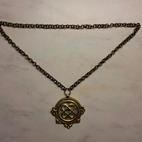 Kaulakoru pronssia, Karkun Palviala nuorempi rautakausi. Pituus 60cm, 48g, 3cm X 5,5cm, leima kk