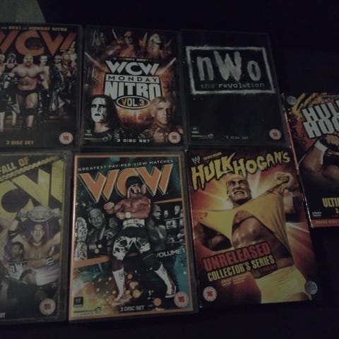 WWE showpainia useamman 3 levyn boxin verran, osa vielä muoveissakin ja loput ihan yhtä hyviä vain ilman muoveja. Nouto Raisio/postitus 7e.