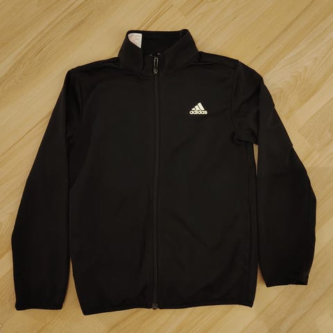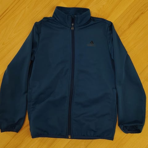 Adidas urheilu pusakka / takki koko 128cm. Edessä vetoketju rintakehään asti (ei ole alas asti auki). Adidas logo rinnassa ja raidat olkapäillä. Helmassa kiristysnyöri. Kevyttä kangasta, sopii hyvin esim. treenin alkuun lämmittelyyn tai muutenvain ulkoiluun.