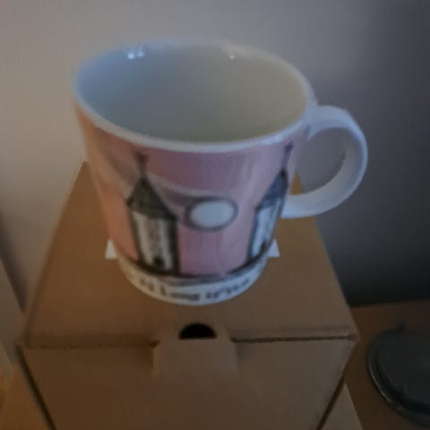 Myydään vitriinissä ollut Glosholm vaaleanpunainen majakkamuki.