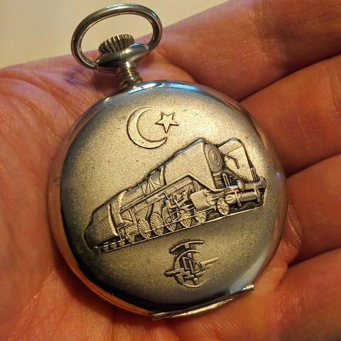 Toimiva, upea taskukello jossa ajan tuomaa patinaa. Taiteellinen käden jälki näkyy kellossa.
