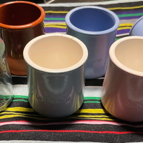 La Fermiere -jogurttiruukut Taivaansiniset ranskalaiset Cermer-jogurttikupit.