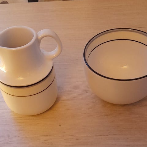 Arabia Veranda sokerikko ja kermakko. Alkuperäinen pahvipakkaus, jossa kulumaa.