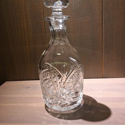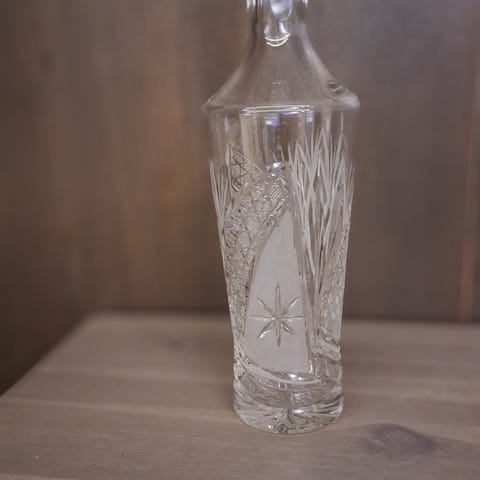 Myydään kristallikarahvi. Korkeus 20 cm.