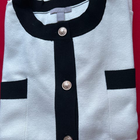 Uusi musta naisten neuletakki sekä harmaa raitapaita XL