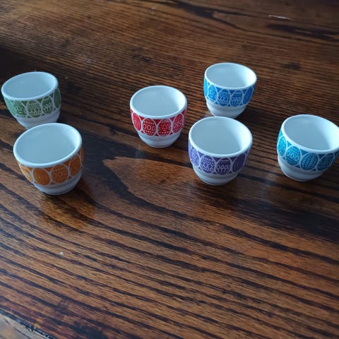 Myydään 3 kappaletta Arabian munakuppeja, yht. 50 euroa + postikulut.