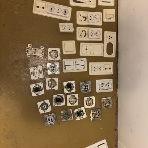 Kotelossa on kytkin ja 4 pistorasiaa, näitä on 3 kpl.