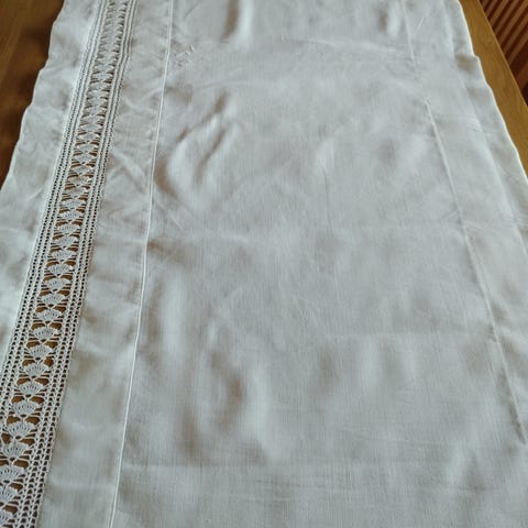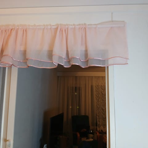 Kooltaa 478 x 45 cm. Tukevaa pitsiä. Hetken ollut itsellä ikkunassa. Verho uudenveroinen.