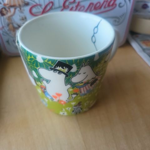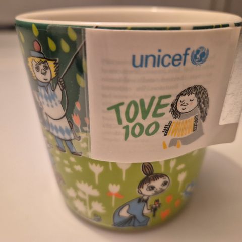 Myyntiin upea Toven juhla -muumimuki vuodelta 2014. Muki on tarrallinen ja käyttämätön.