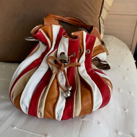Laadukas ja tyylikäs, jossa on lyhyt ja iso kahva, irrotettava olkahihna sekä taitettava yläosa, jossa on piilotettu neppari. Sisällä iso vetoketjutasku.