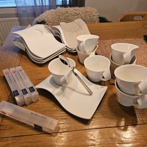Myydään 4kpl New wawe lautasia. Kaikki lautaset erinomaisessa kunnossa. Korkeus 26, leveys 38