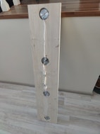 Valkolakattuun 20x100 cm lautaan upotetut 4 kpl 7 w led lamput. Ledien teho yht. 21w joka vastaa noin 150w hehkulamppua. Tästä esim. Mökille 12 v järjestelmään luonnonkirkas väriltään oleva paneeli katosta roikkumaan.