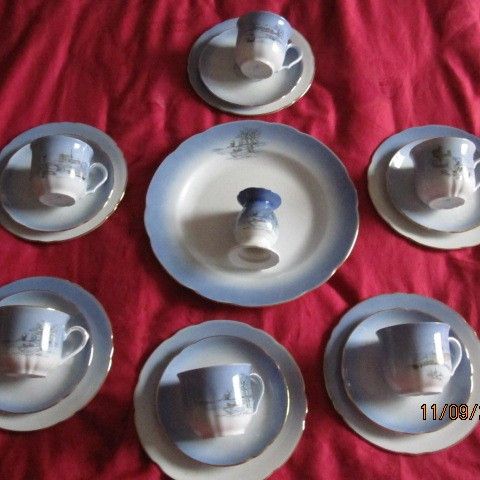 7 kpl kahvikuppi, aluslautanen, pullalautanen (kuvassa näkyvät kupit)