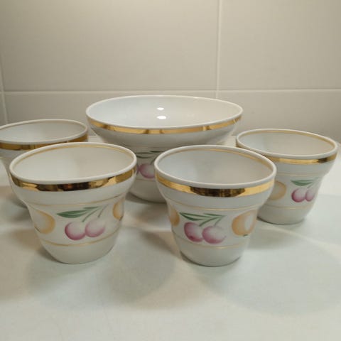 Vanha Itävalta-Unkarin aikainen posliinikulho. Kultaus on vähän kulunut, mutta kippo on muuten ehjä.