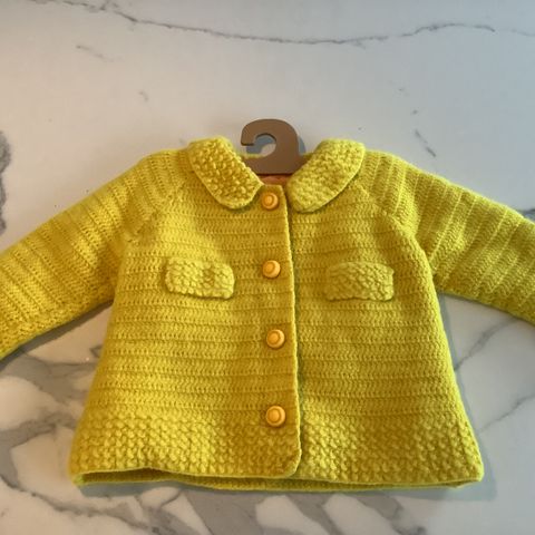 Käsinkudottu lämmin retro-villatakki. 1970-luvulta, joten ei enää uudenveroinen, mutta käyttökelpoinen. Helmasta puuttuu yksi nappi.