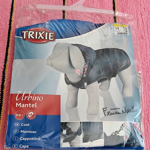 Trixie huomiovärinen sadetakki. Ohut verkkovuori. Vyössä tarrakiinnitys, jalkalenkit, kaula-aukossa kiristysnyöri. Jonkin verran käytetty, tosi siisti, ei moitittavaa kunnossa.