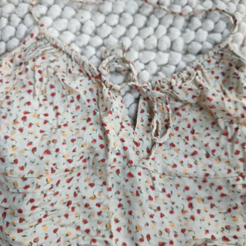 Vaalean koralli Atmospheren kesätoppi selän näyttävällä pitsikoristeella, säilytyksestä rypyssä. Koko 36, löysä malli menee myös M. Mittoja tarvittaessa.
