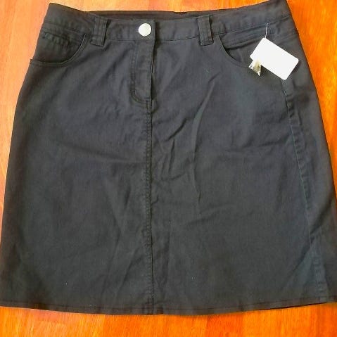 Sininen Farkku Puolihame, koko M/L(katso vielä mitat), edessä vetoketju ja nappi, edessä-ja takana taskut, vyön lenkit, vyötärön mitta 43cm edestä mitta, hameen pituus 36cm, ehjä