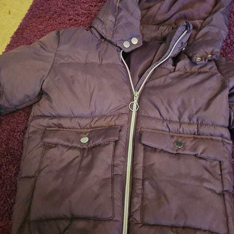 Violetti H&M merkkinen tyttöjen toppatakki. Tämä on talveen sopiva lämmin takki pörrövuorella ja irrotettavalla karvahupulla. Lasten ja tyttöjen malliston lila talvitakki koko 170 cm. Takin kiinnitykseen on vetoketju ja lisäksi edessä on läppä mikä on nepparikiinnityksellä. Takin taskut on nepparikiinnityksellä. Karvahuppu on nepparikiinnityksellä kiinni takissa. Hyväkuntoinen ja ehjä nätti takki talveksi. Tästä oikein kiva ja lämmin takki kylmiin talvipäiviin. Varmaankin on hyvä talvitakki M kokoiselle naiselle. Nyt takki on S kokoisen mallin päällä, jolle takki jää vielä löysäksi. Kiva talvitakki nuorelle tytölle kouluun tai on oikein hyvä työtakki jollekin keskikokoiselle naiselle.