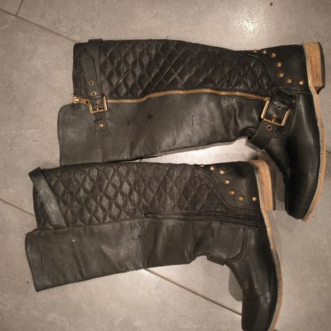 Hyvässä kunnossa. Nyt pois pyörimästä tarpeettomana nätit saappaat. Ovh. yli 200e!