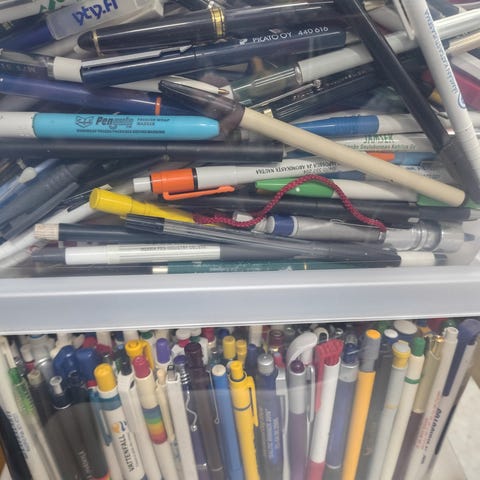 Löytyy uusia ja käytettyjä. On yksittäin ja joitakin samoja kyniä. Koko paketti myydään. Täyttyy pikku hiljaa lisää jos saan/löytyy kynä jota epäilen ettei ole. Nouto tai posti jolloin ostaja maksaa postikulut.