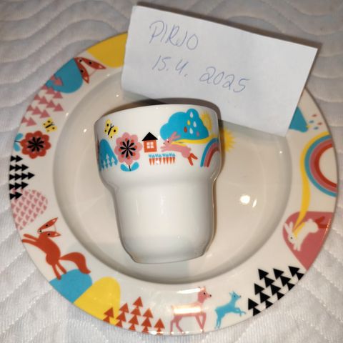 Arabia Lysti lautanen ja Lysti muki pupu vihreä