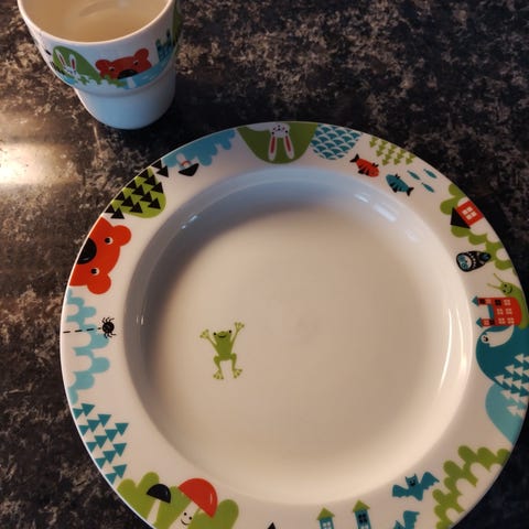 Uudet käyttämättömät Arabia Lysti lautanen pupu vihreä ja Lysti muki pupu vihreä. Lasten lautanen ja muki.