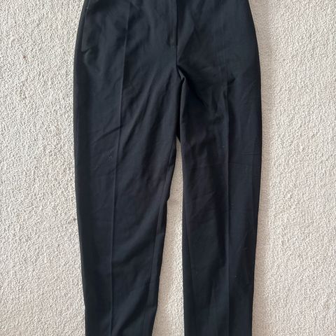 Object mustat, suorat housut, koko 34 (vaatekoko, ei tuumakoko). Vastaavat kokoaan. Malli Cecilie, 7/8-pituiset lahkeet. Jalkaan vedettävää mallia. Normaali vyötärö. Vyötärö on takaosasta joustava. Valesepalus. Edessä taskut, takana viiltomaiset valetaskut. Kauniisti laskeutuva materiaali; 62% polyesteri, 33% viskoosi ja 5% elastaani. Oikein hyväkuntoiset, ajaton, klassinen malli.