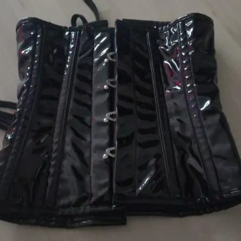 Myydän upouusi Artifice Clothingilta tilattu musta pvc korsetti.