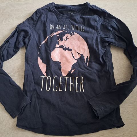 Myydään hyväkuntoinen tumma tyttöjen T-paita Name It. Koko 134 cm- 140 cm. Sopii parhaiten 8-10-vuotiaille. Kimalle sydän keskellä.