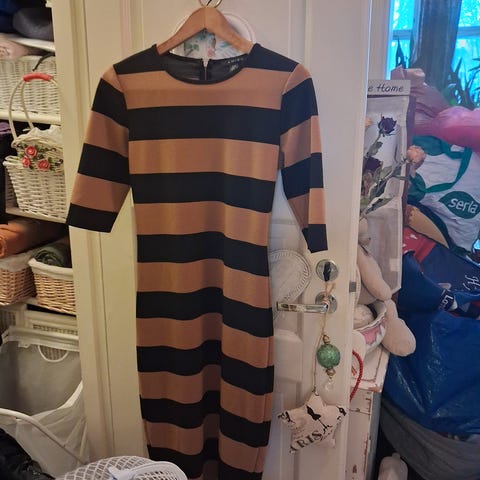 Amisu merkkinen harmaa hihaton mekko. Naisten mekko koko 36 eli tämä on S -koolle hyvä mekko. Kangas joustaa hyvin joka suuntaan. Hyväkuntoinen pitkä mekko. Itsellä helma meni polven alapuolelle. French beauty teksti ja kukkia on mekossa rinnuksilla kivana koristeena. Vartalonmyötäinen mekko malliltaan. Oikein mukavan rento mekko kotoiluun tai kesäksi. Kiva pienen naisen mekko.