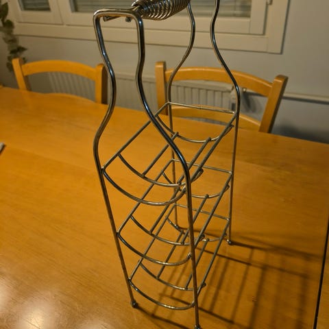 Myydään metallinen viinipulloteline. Yhdelle pullolle. Postikulut lisätään.